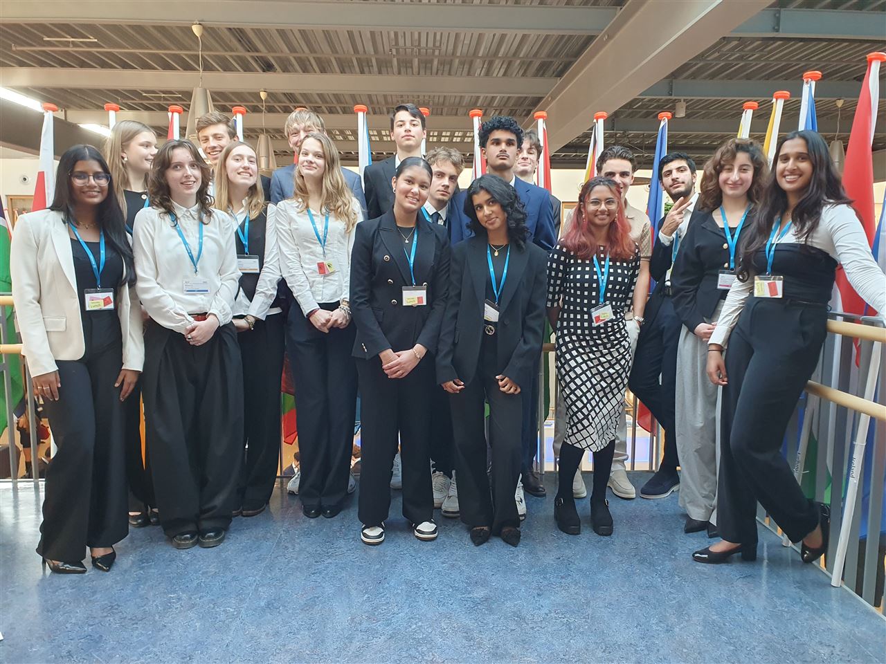 Ook dit jaar hebben 30 bovenbouwleerlingen van Zandvliet deelgenomen aan MUNISH (Model United Nations op de International School of the Hague). Samen met leerlingen uit o.a. Frankrijk, de Verenigde Emiraten, het Verenigd Koninkrijk, België, Egypte, Turkije, Duitsland, Senegal, Marokko, Saoedi Arabië, Cyprus en India hebben zij in het Engels gedebatteerd over actuele onderwerpen zoals de kimaatcrisis en de oorlog in Oekraïne. Ze hebben het heel goed gedaan.